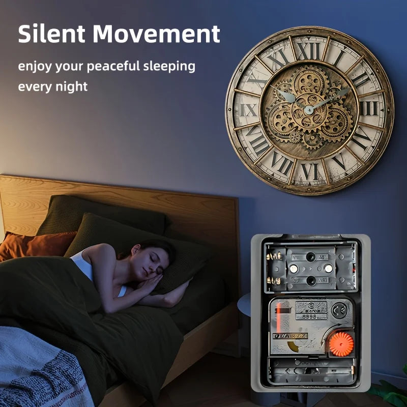 46cm Real Moving Gears Wall Clock Large Industrial Steam Punk Roman Numeral Wall Clock Living Room home Decoration Quartz Clock