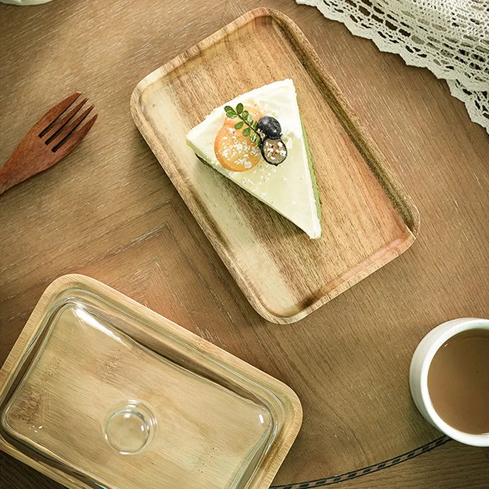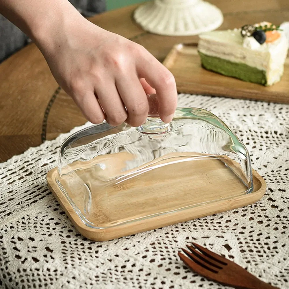 Easy to clean, the glass lid can be washed in the dishwasher, and the bamboo base can be rinsed with water or wiped with a damp cloth.