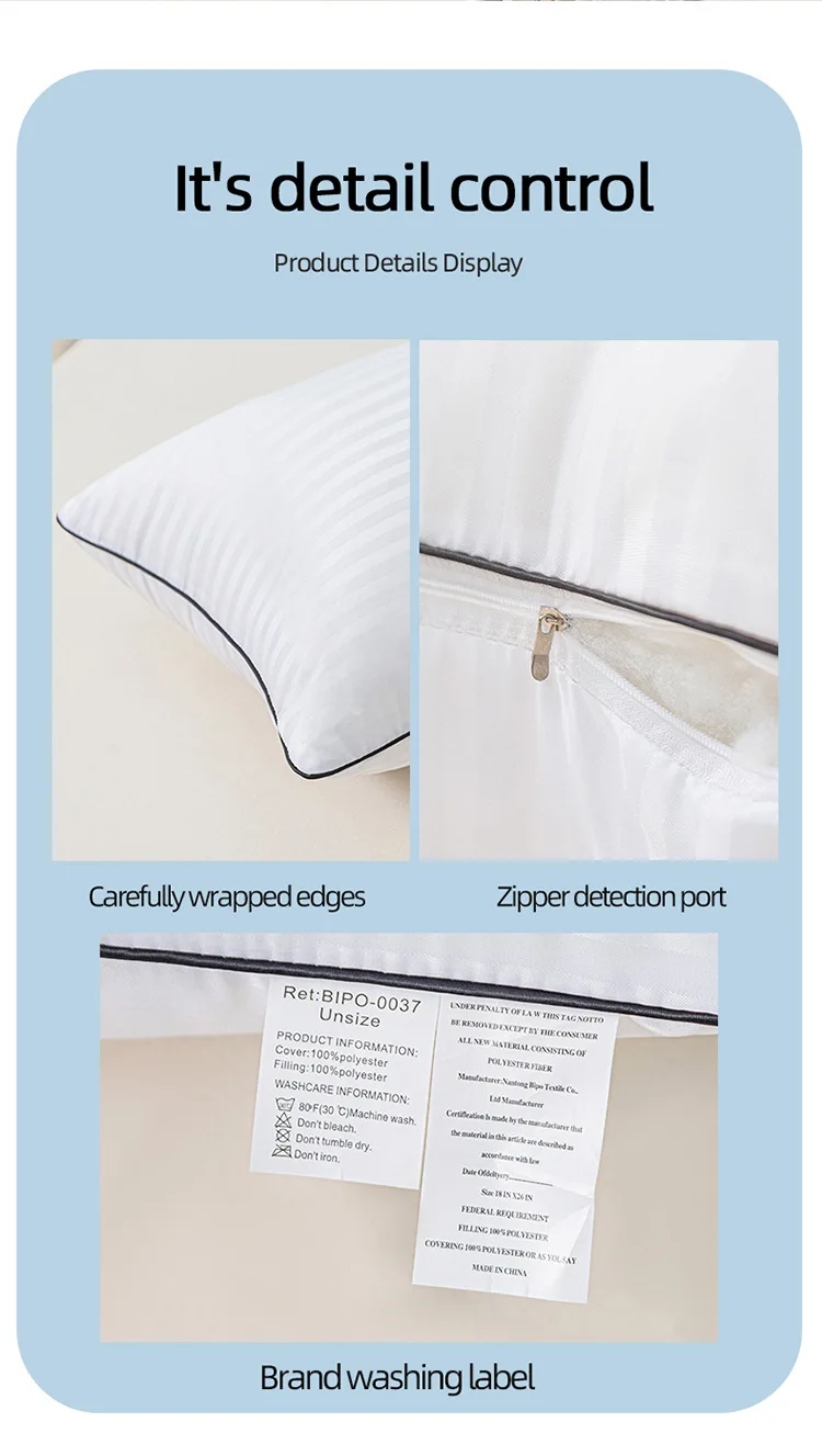 Hotel Sleeping Pillows for Bed Anti Wrinkle White Satin Stripe Comfortable Core Washable Skin-friendly Adult Cute Neck Pillow