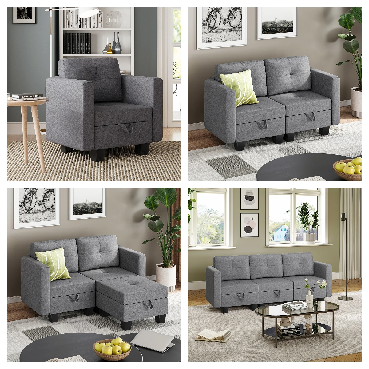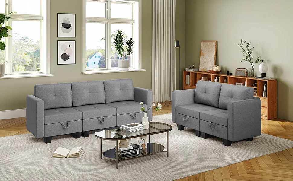 Fabric Modular Sofas with Upholstered Cushion and Removable Back Cushion Covers, Modern Sectional Sofa for Living Room - 2 seater / set / UNITED KINGDOM