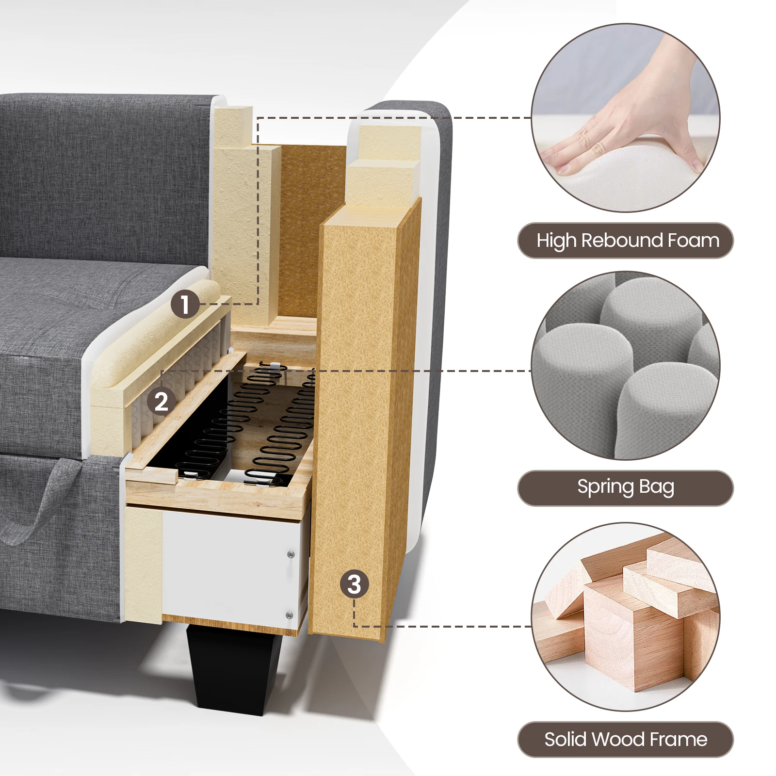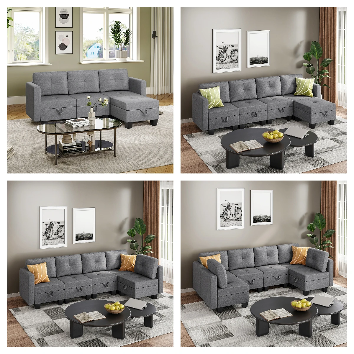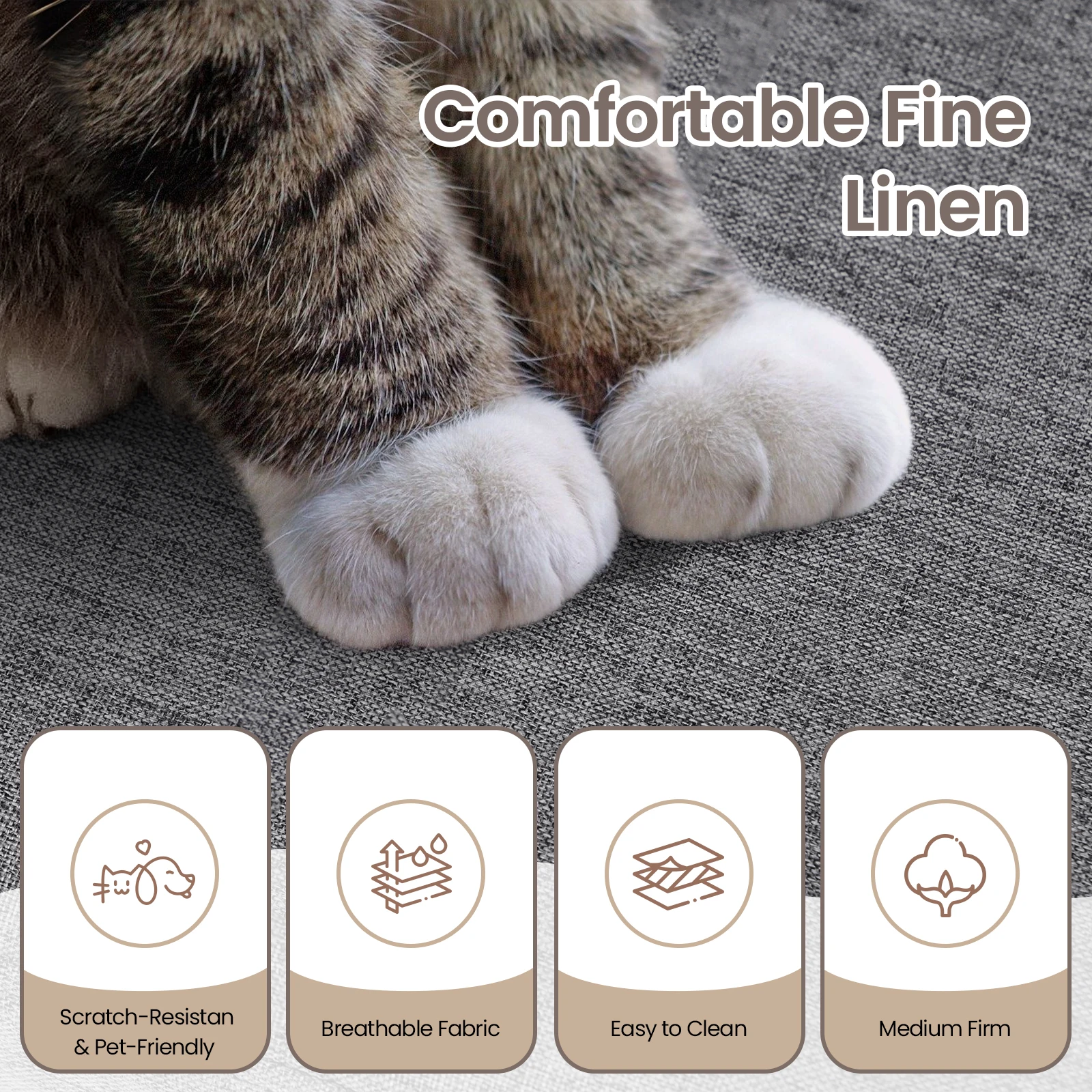 Fabric Modular Sofas with Upholstered Cushion and Removable Back Cushion Covers, Modern Sectional Sofa for Living Room